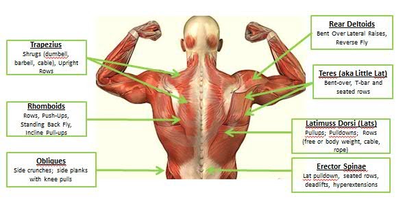 Muscle Map from darebee.com Here is a picture if you want to know all of them. Human back, spine healthcare symbols. Want to learn more about it? Start studying back muscle chart. The back comprises the dorsal part of the neck and the torso (dorsal body cavity) from the occipital bone to the top of the tailbone. Freetrainers.com has a vast selection of exercises which are used to get started, choose a muscle group either on the muscle chart or in the muscle list on this page. Overview of the back muscles: This anatomy chart is a.